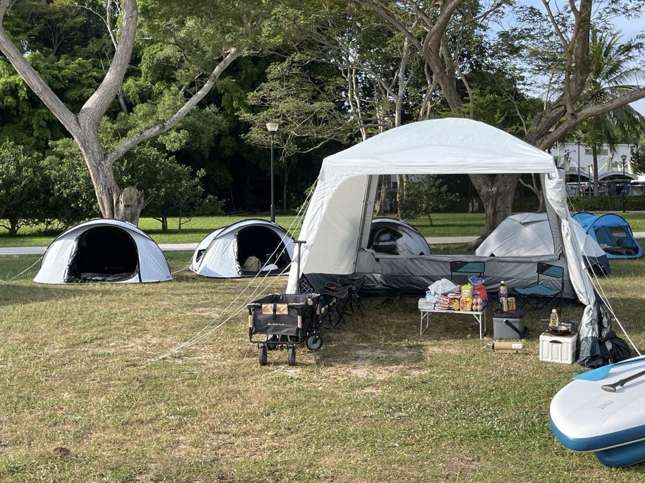 (Camping tent, sleeping bag & mat, camping light & fan and simple meals are included).